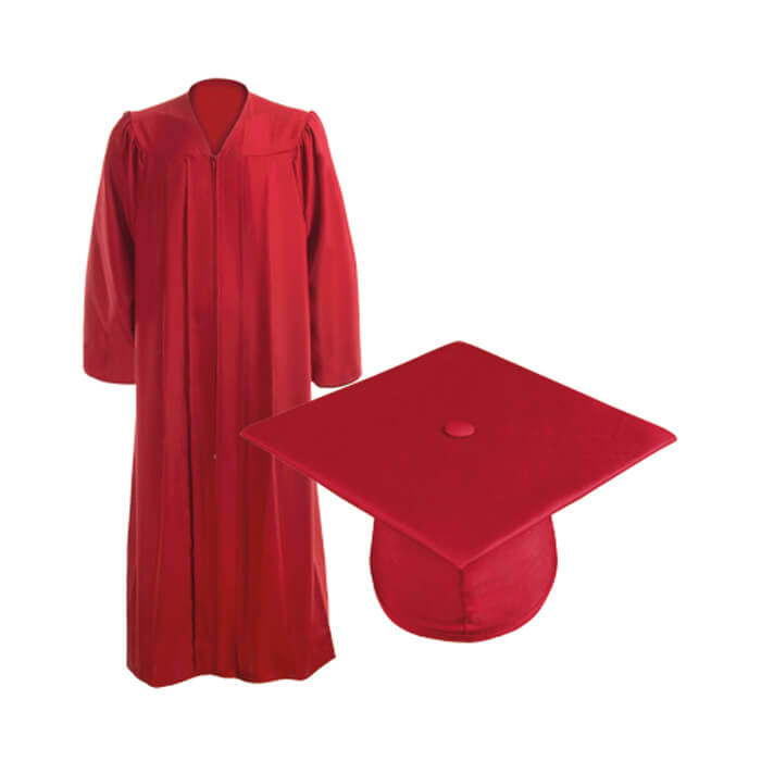 Le Tenue Rouge comprend une Coiffe de Diplôme et un Toge de Diplôme assorti.