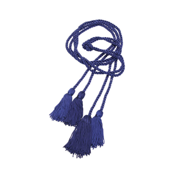 Our Navy Blue Honor Cord is made of solid material. Due to it being twisted, the Honor Cord has a nice glow. The endings of both sides of the Honor Cord have been tight up in a knot and result in a tassel.
